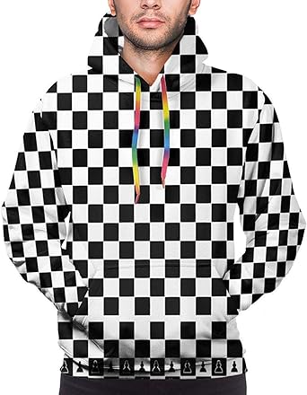 Felpe Con Cappuccio Pullover A Maniche Lunghe Con Cappuccio Da Uomo A Quadri Quadrati Bianchi E Neri Cappotto Con Tasca Amazon It Abbigliamento
