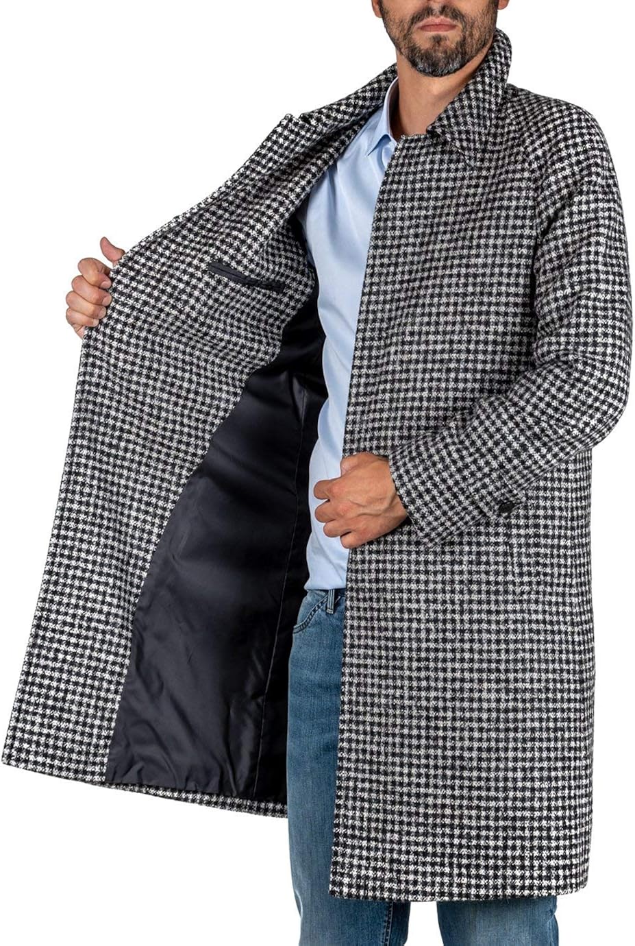 Cappotto Giacca Lunga Uomo A Fantasia Quadri Bianco E Nero Dandy In Calda Lana S Ebay