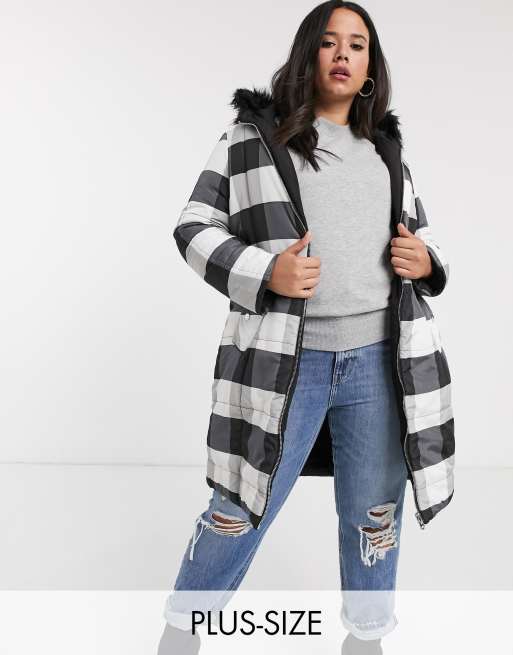 Simply Be Cappotto Imbottito Double Face Nero E Bianco A Quadri Asos
