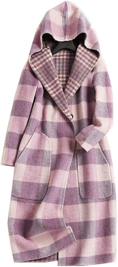 Z S Cappotto Di Lana Autunno E Inverno Donna Con Cappuccio A Maniche Lunghe Un Pulsante Senza Cinture Allentate Rosa E Blu Motivo A Quadri Casual Lungo Cappotto Lungo Di Lana Pink L Amazon It Abbigliamento