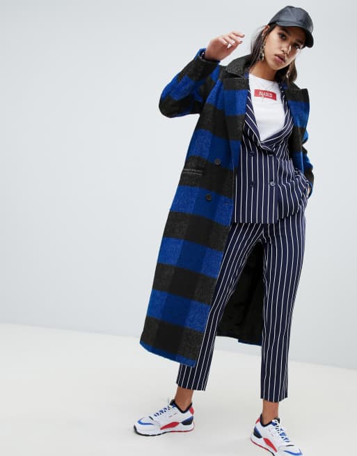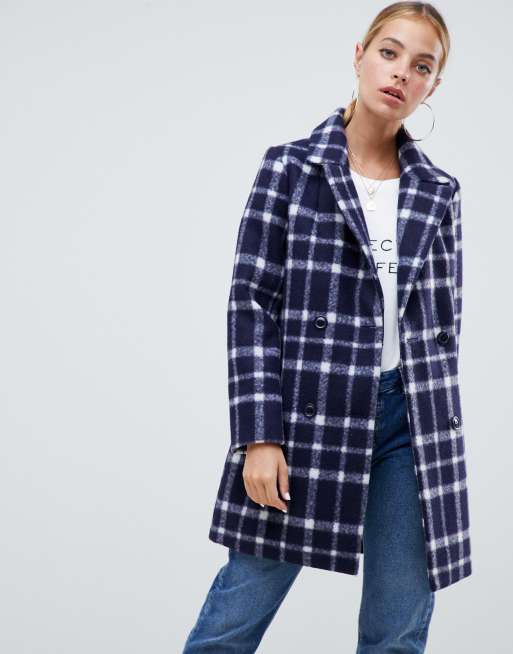 Noisy May Cappotto Lungo Sartoriale A Quadri Blu Navy Asos