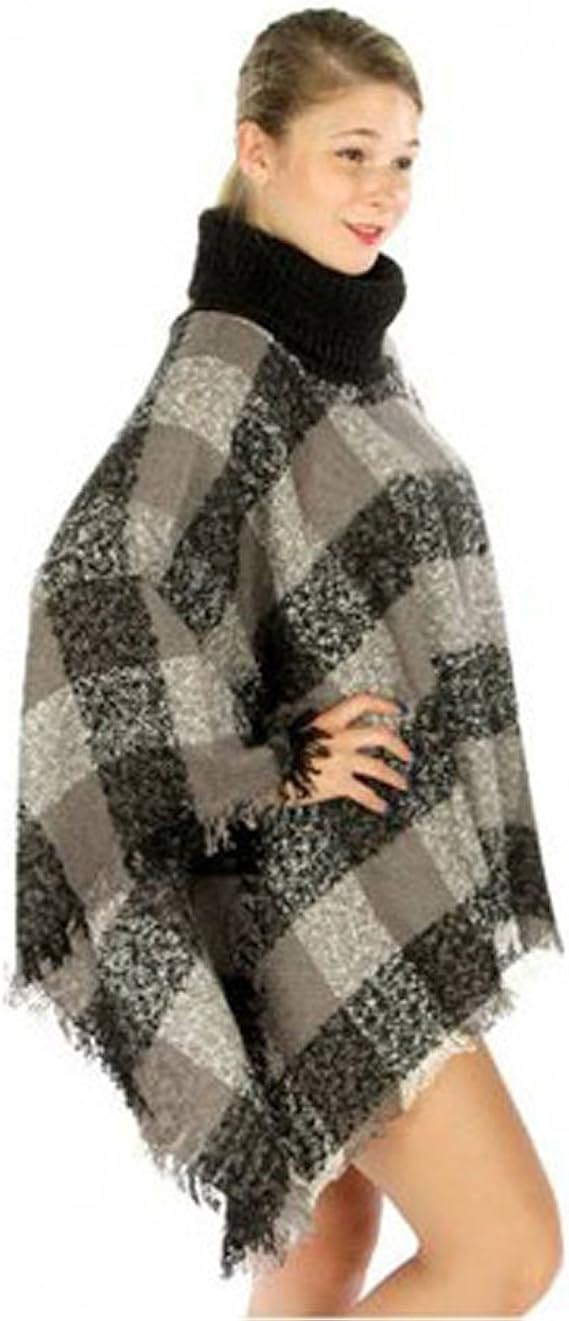 Poncho A Quadri Donna Maglia Con Frange Vintage Moda Tartan Giacca Cappotto Scialle Cape Pullover A Collo Alto Maglione Autunno Inverno Mantella Maniche A Pipistrello Jumper Top Oversize Landove Amazon It Abbigliamento
