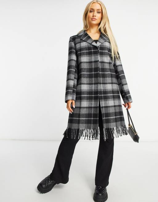 Asos White Cappotto Di Lana A Quadri Con Frange Asos