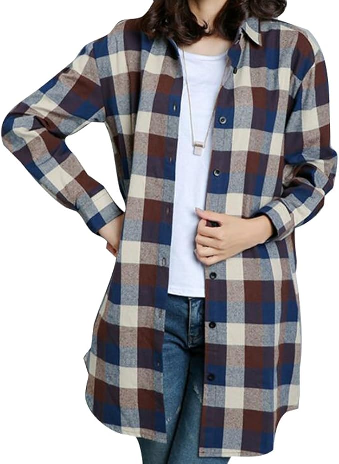 Yying Camicia Quadri Donna Lungo Camicette Maniche Lunghe Tshirt Tartan Top Irregolari Bluse Maglietta Cappotto Nero Rosso Grigio Verde 7 Colori S 2xl Amazon It Abbigliamento