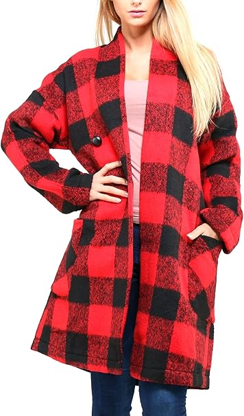 Cad57 Cappotto Lungo Autunno Inverno Tessuto Con Motivo Scozzese A Quadri Tasche Moda Donna Rosso Rosso L Amazon It Abbigliamento