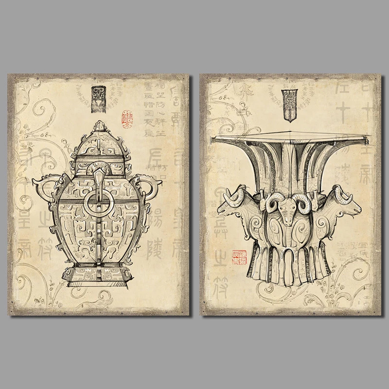 Retro Stile Cinese Dinastia Shang Quattro Pecore Bronzo Disegno Decorazione Della Parete Di Arte Quadri Su Tela Pittura Per Living Room Unframed Painting Styles Canvas Paintingpainting For Living Room Aliexpress