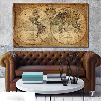 Zhangpengbofbh Quadri Su Tela Una Mappa Del Mondo Arte Antica Retro Per Soggiorno Stampe Su Poster Decorazioni Per La Casa Arte Da Parete 50x120 Cm Senza Cornice A Amazon It Casa E Cucina