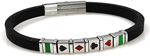 Bracciale In Caucciu Nero E Simboli Carte Da Gioco Poker Texas Holdem Asso Cuori Quadri Fiori Picche Chiusura In Acciaio Lungo Cm 21 Largo Mm 6 Amazon It Gioielli