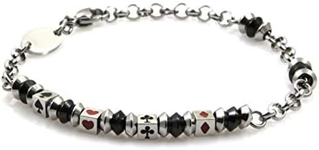 Bracciale Poker In Acciaio Con Carte Da Gioco Smaltate Asso Cuori Quadri Fiori Picche Amazon It Gioielli