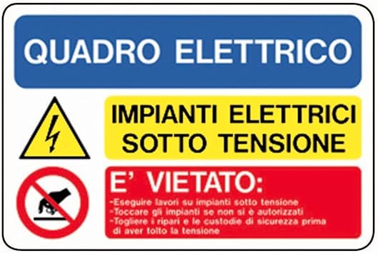 Cartello Quadro Elettrico Impianti Sotto Tensione 30 X 20 Cm