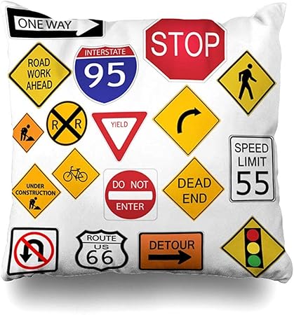 Copri Cuscino Quadrato Varie Uturn Cartello Stradale Deviazione Cartello Modo Oggetto Segni Autostradali Lavoro Traffico Isolato Su Simboli Federa Amazon It Casa E Cucina