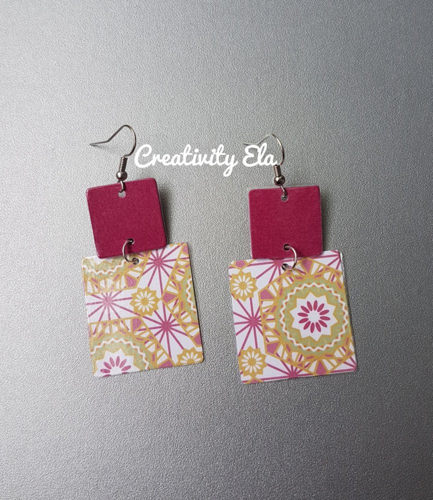 Orecchini A Lobo Quadrati In Cartoncino Pressato Ricoperti Di Carta Vintage Rossa In 2020 Paper Jewelry Etsy Shop Etsy