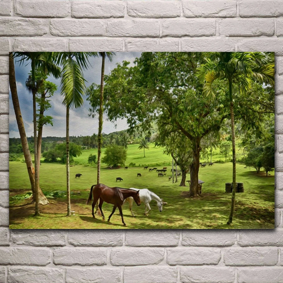 Feliz Fazenda Verde Natureza Paisagem Animais Cavalos 202fj Sala De Estar Decoracao Da Arte Da Parede Casa Quadro Madeira Tecido Cartaz Fabric Posters Landscape Animalgreen Nature Landscaping Aliexpress