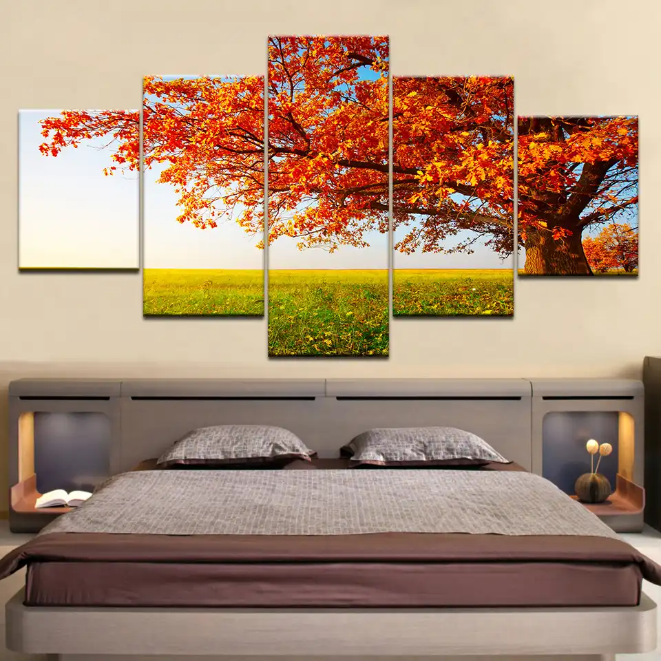 Quadros Em Tela Modular Sala De Estar Decoracao Casa Quadro 5 Pecas Amarelo Madeiras Quadros Hd Impressoes Folhas Poster Arte Da Parede Pintura E Caligrafia Aliexpress