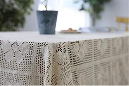Deenli Tovaglia Quadrata In Cotone E Lino Adatto Per Quadrata Tavola Rotonda Tavolino Lavabile Fiore Uncinetto Beige Lavorato A Mano 132cmx178cm Mq137 Amazon It Casa E Cucina