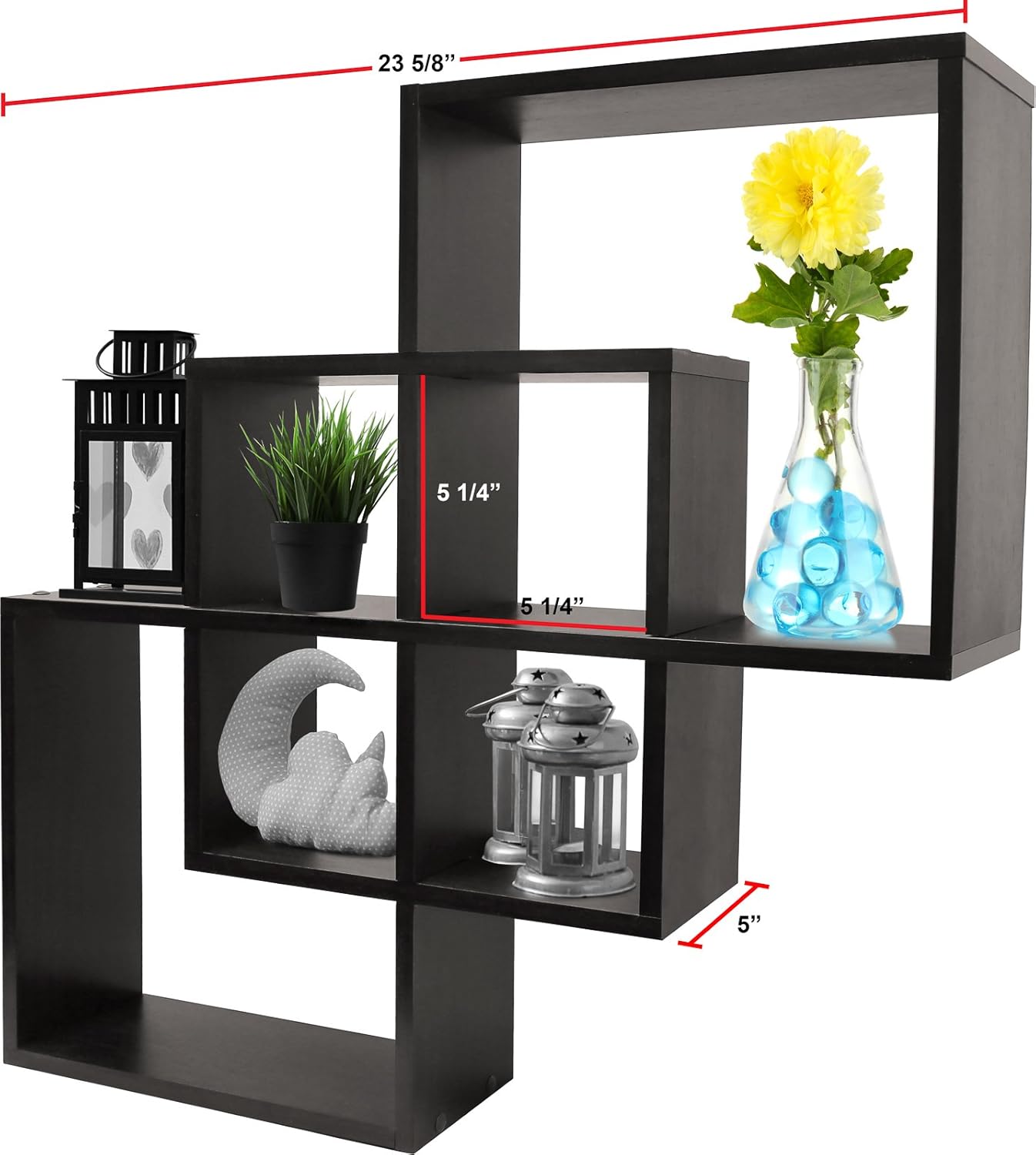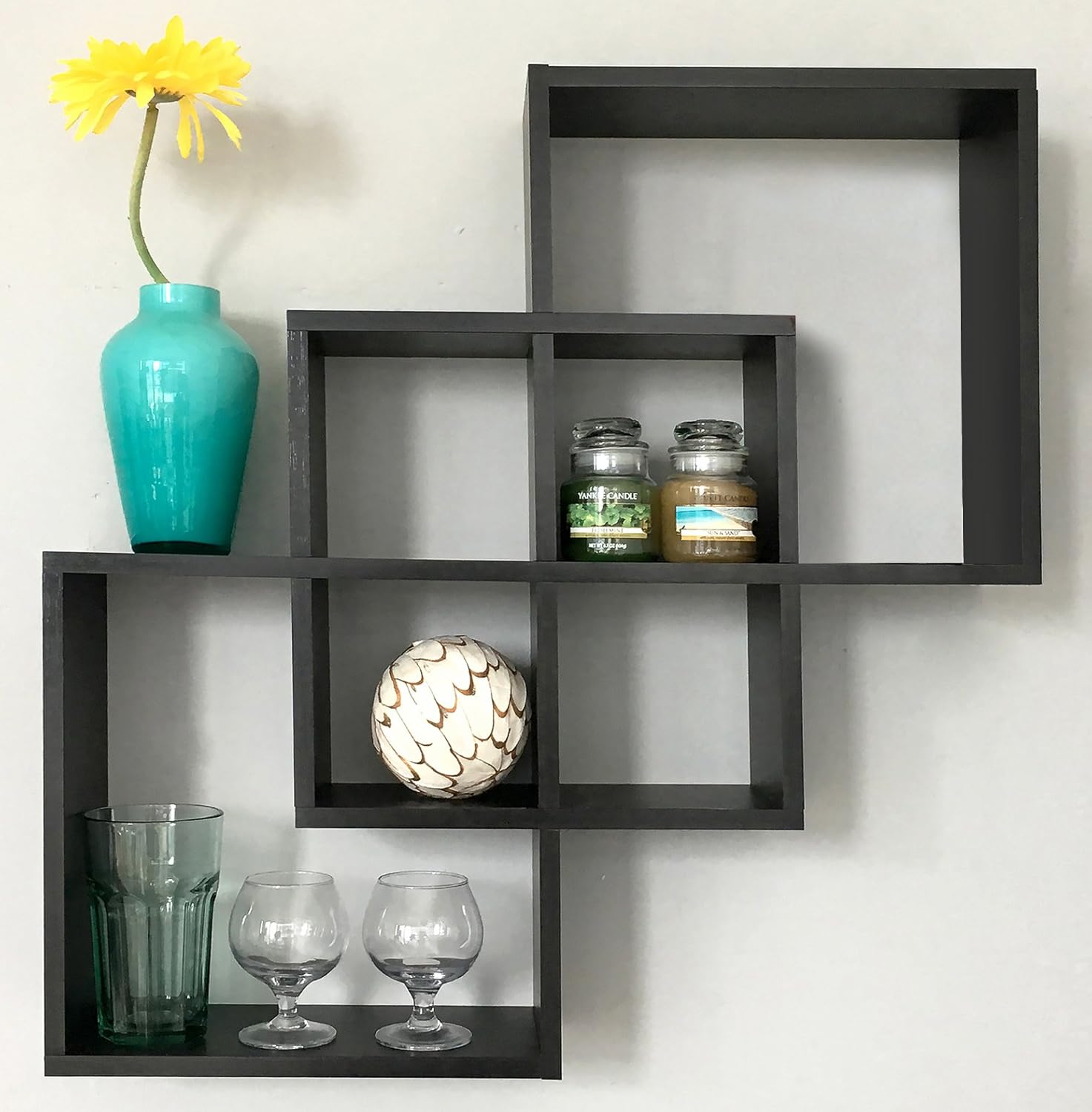Espresso Finish Greenco Quadrate Felix 3 Cubes Intersecting Decorative Wall Mounted Floating Shelves Home Decor Home