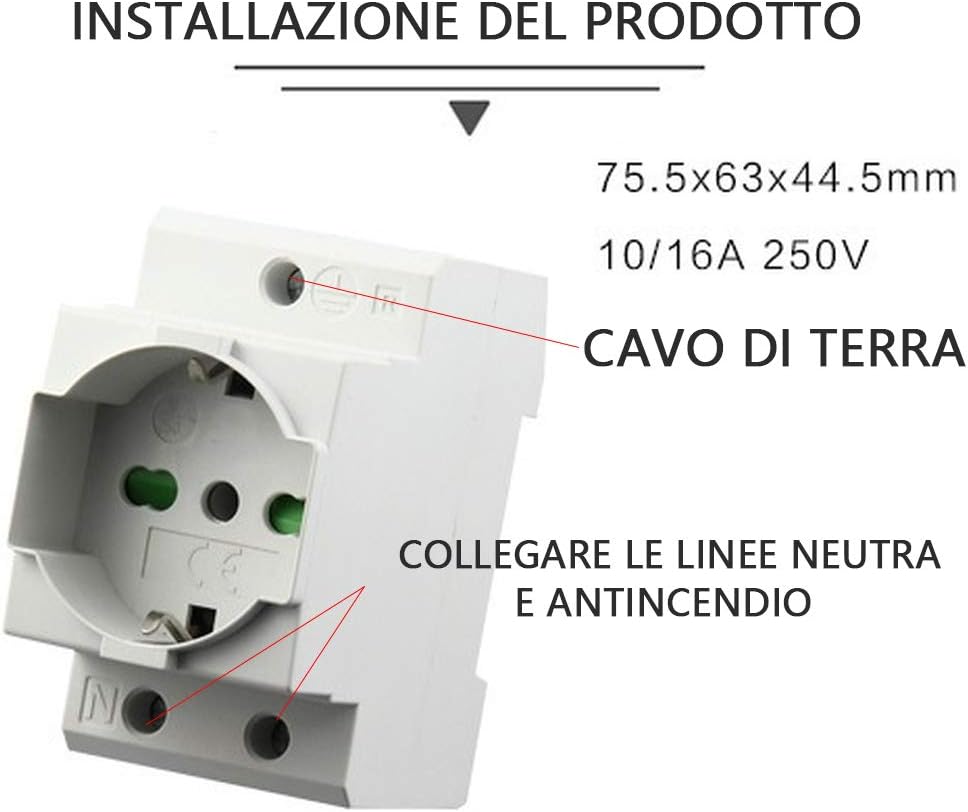 Rhuk Presa Elettrica Universale 250v Cassa In Nylon 1 Pc Binario Presa Tedesco 16a Per Scatola Di Distribuzione Quadro Elettrico 10a Presa Da Muro Corrente Modulare Italiana Standard 2500 W Materiale Elettrico Illuminazione