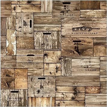 Carta Da Parati Adesiva Vintage Cassette Di Legno Formato Quadrato 192x192 Cm Amazon It Fai Da Te