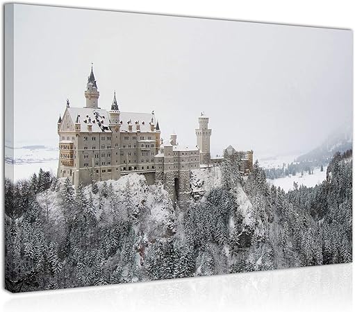 Topquadro Quadro Stampa Su Tela 70x50cm Castello Di Neuschwanstein Baviera Neve E Inverno Paesaggio Invernale Natura Decorazioni Interni Amazon It Casa E Cucina