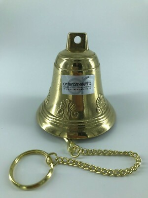 Campana In Ottone Lucido Da Appendere Con Gancio E Catenella Gioco Arredo Estern Ebay