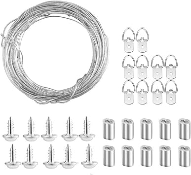 Tuparka Ganci Appendi Quadri Compreso 2mm X 10 M Cavo Acciaio Con 10 Tubi A Crimpare 15 D Ring Ganci Appendiabiti Cornice E Viti Per Appendi Quadri Amazon It Casa E Cucina