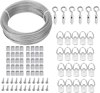 Kit Corda Per Appendere Quadri Set Di 20 Ganci A D Con Viti Con Manicotto In Alluminio E 1 Cavo Da 30 5 M E 1 Corda In Nylon Da 10 M