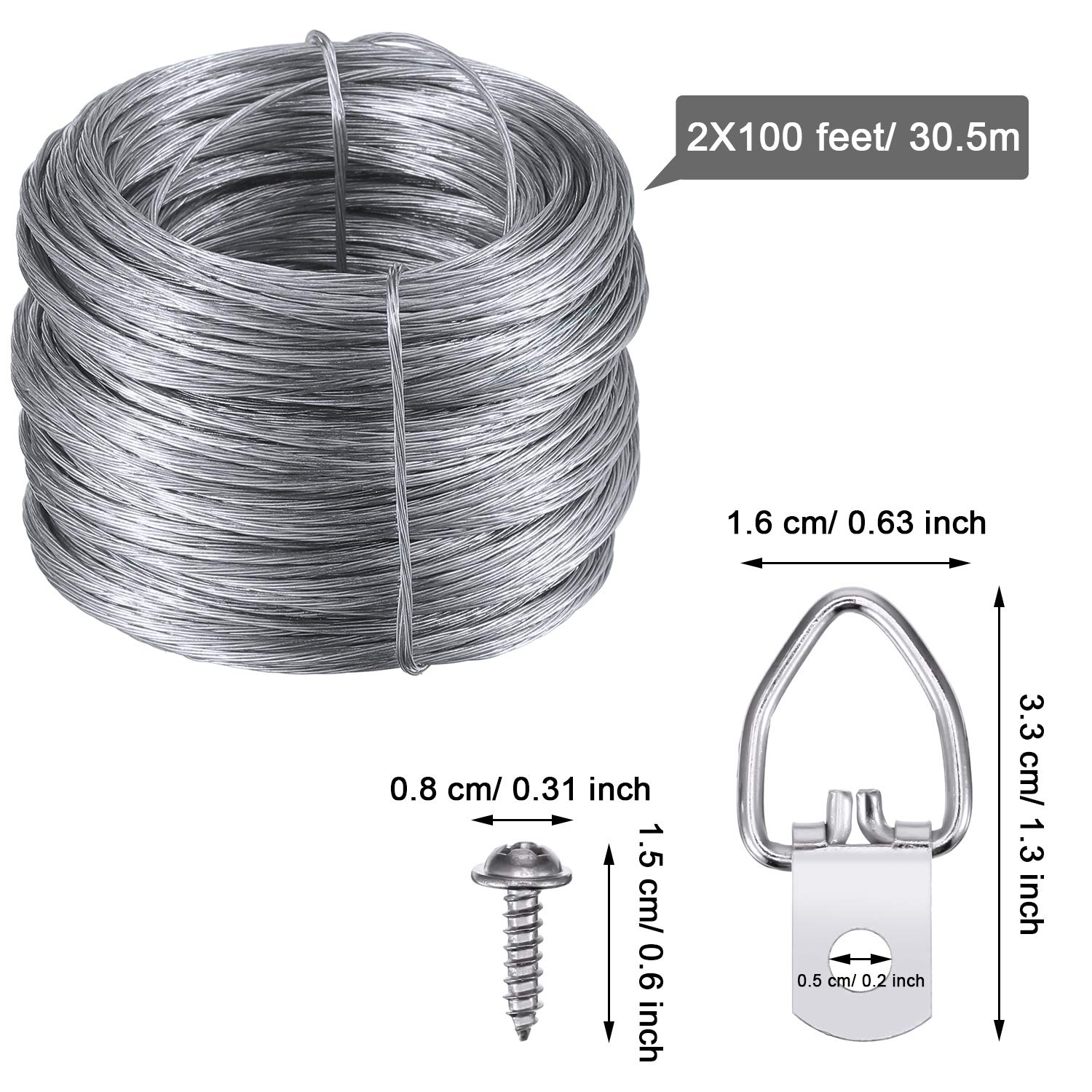 Supporta Fino A 30 Libbre Filo Per Quadri 200 Piedi Kit Per Foto Appeso 20 Pezzi Ganci Per Immagini A D Anelli Con Viti Casa E Cucina Hobby Creativi