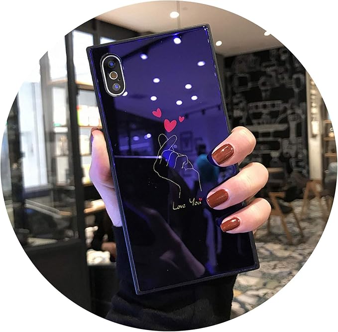 Luce Blu Quadrato In Vetro Per Cellulare Iphone X Case Girl Cute Heart Kiss Modello Cover Per Iphone 7 8 6 6s Plus For Iphone 7 8 5 Amazon It Elettronica