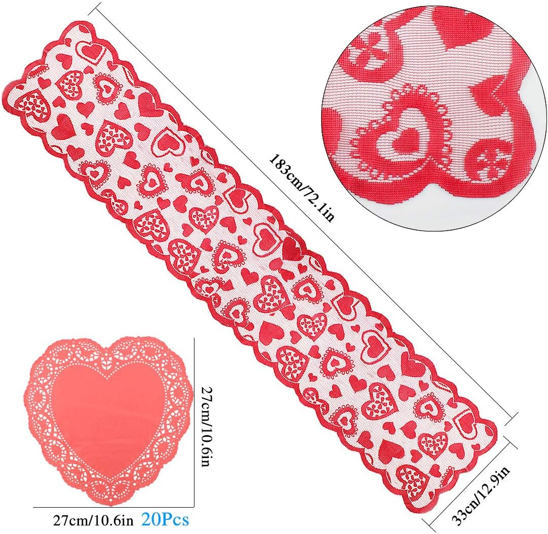 Runner Da Tavola In Pizzo 33 X 182 9 Cm E 20 Centrini Da 25 4 Cm Con Cuore Rosso Per Festa Di Nozze Selftek Decorazioni Di San Valentino Agspolska Pl