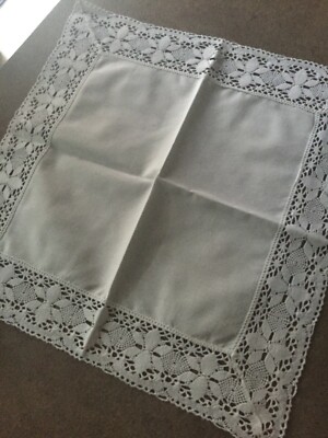 Centro Tavolo O Centrino In Tessuto Di Tela Di Puro Cotone Pizzo Bianco Shabby Ebay