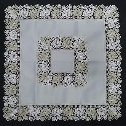 M O Centro Centrino Centrotavola In Seta Cm 90x90 Quadrato Ricamato A Mano Disponibile In Due Modelli Amazon It Casa E Cucina
