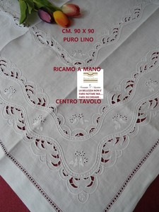 Centro Tavolo Quadrato In Lino Ricamato A Mano Cm 90 X 90 Bianco Ebay