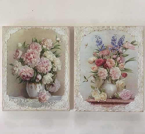 Coppia Di Quadretti Floreali Su Legno 24x30cm Amazon It Handmade