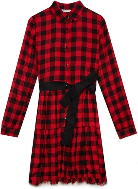 Motivi Vestito Chemisier A Quadri Con Frange Rosso 42 Italian Size Amazon It Abbigliamento