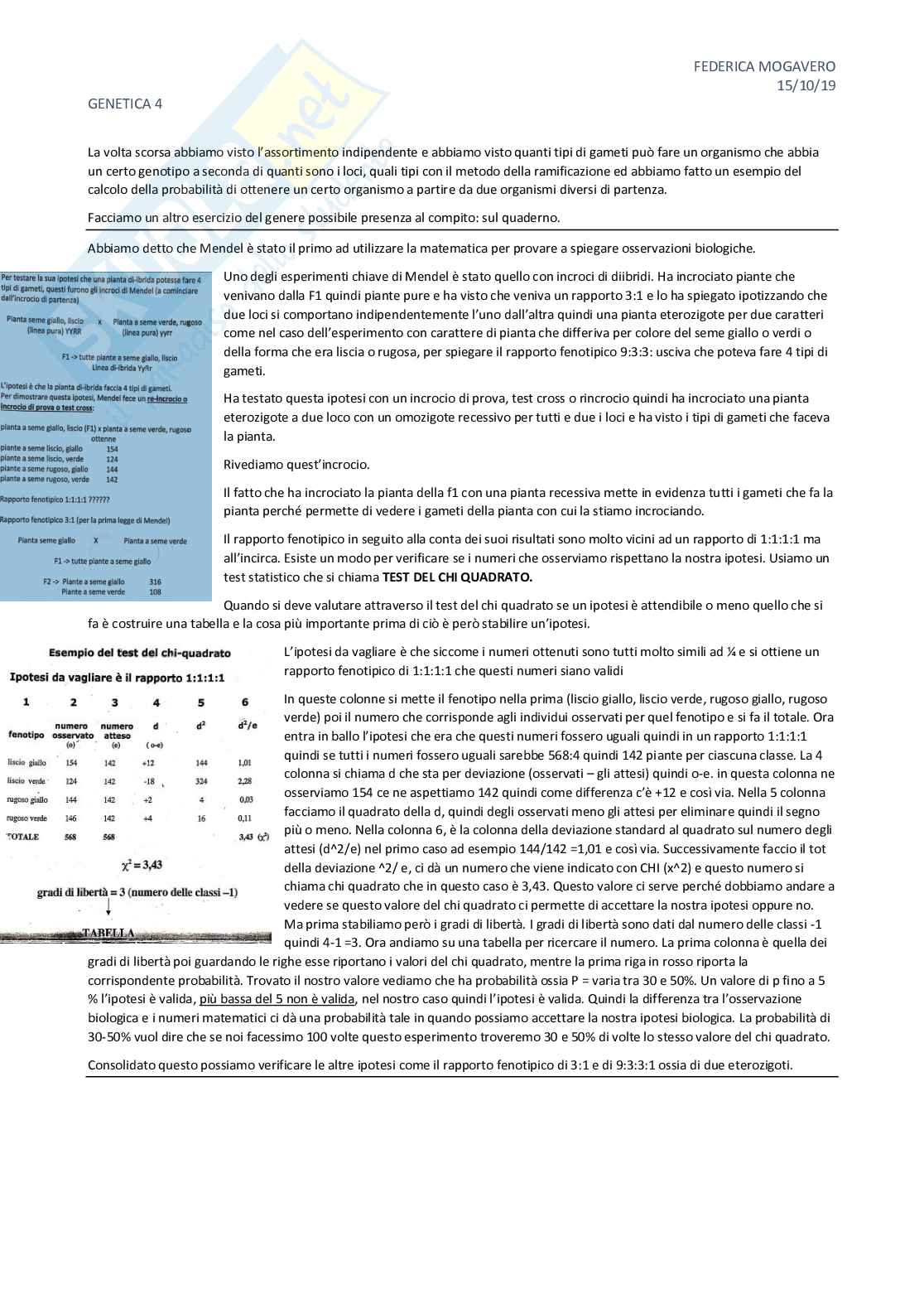 Genetica Test Del Chi Quadrato Biotech02 Appunti