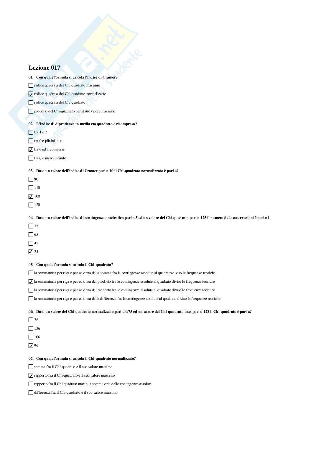 Paniere Completo Di Statistica Con Domande A Risposta Aperta E A Risposta Chiusa Docsity
