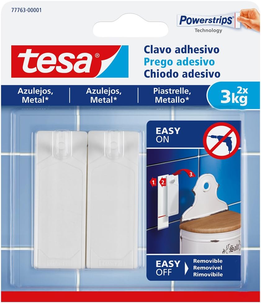 Tesa 77763 00001 00 Chiodo Adesivo Per Piastrelle E Metallo 3 Kg Bianco Set Di 2 Pezzi Amazon It Fai Da Te