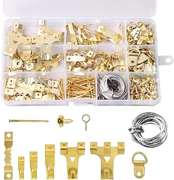 Picture Ganci 140 Pezzi Gancio Per Cornice Set Ganci Dorati Con Chiodi Immagini Specchi Da Parete Heavy Duty A Parete Chiodi Per Appendere Quadri Ganci Appendi Quadri Cornici