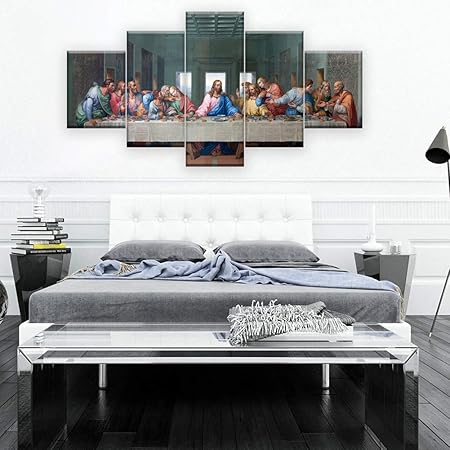 Cxdmn 5 Pannelli Hd Stampa Pittura A Olio L Ultima Cena Di Leonardo Da Vinci Christian Quadri Per Soggiorno Cucina 150x80cm Framed Amazon It Casa E Cucina