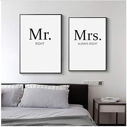 Chthsx Mr Right Mrs Always Right Coppie Stampe Murali Stampe Quadri Citazioni 60x80x2pcscm Senza Cornice Amazon It Casa E Cucina