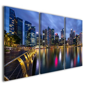 Stampe Su Tela Citta Blue Night Manhattan Quadri Moderni In 3 Pannelli Gia Intelaiati Pronto Per Essere Appeso 120x90cm Quadri Homelook