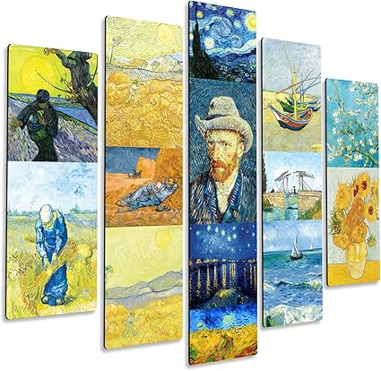 Giallobus Quadro Multipannello 5 Pezzi Van Gogh Collage 3 Stampa Su Legno Mdf Pronto Da Appendere 140x100 Cm Amazon It Casa E Cucina