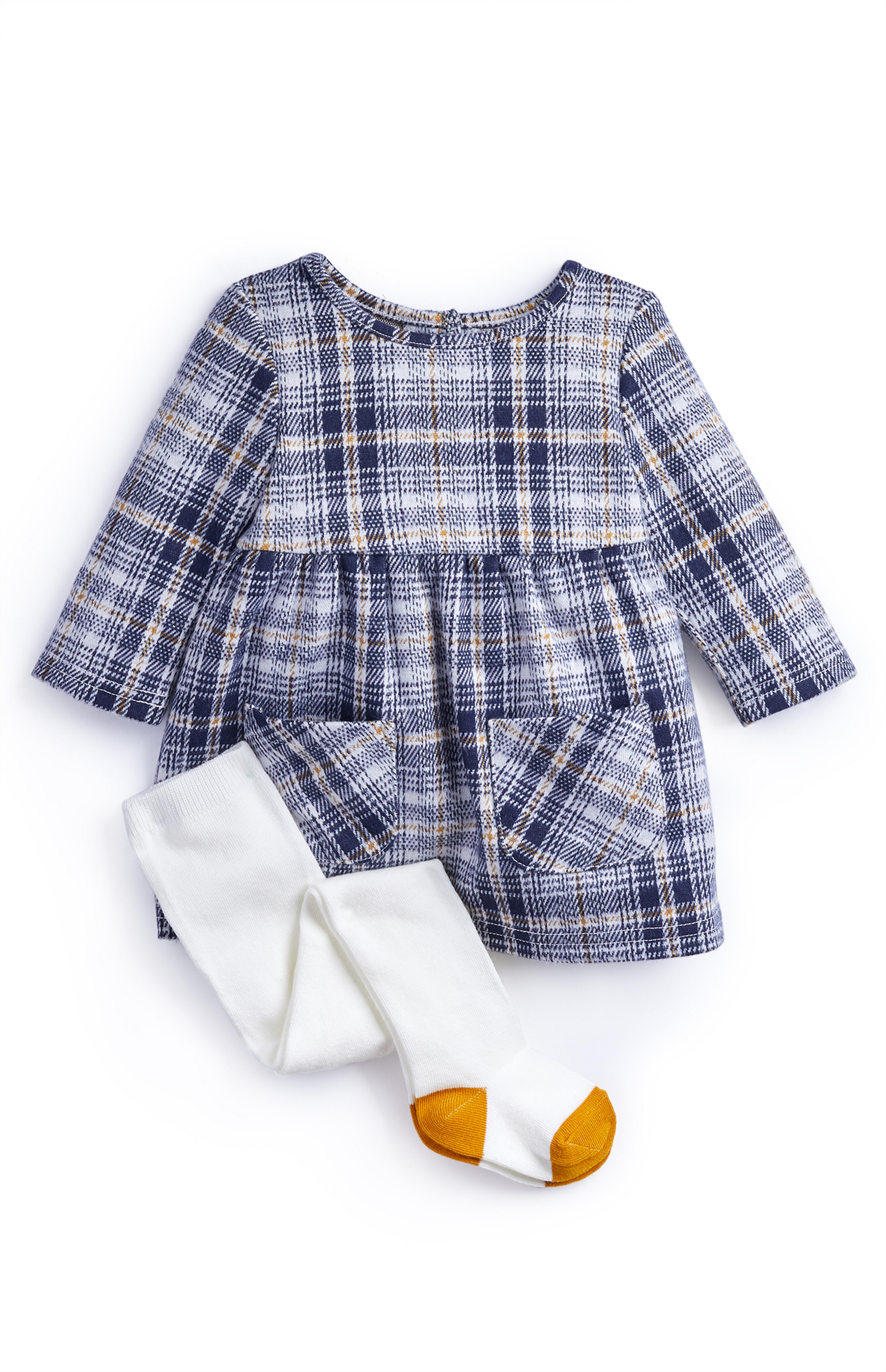 Completo Di Maglia A Costine Vestito A Quadri E Collant Losan
