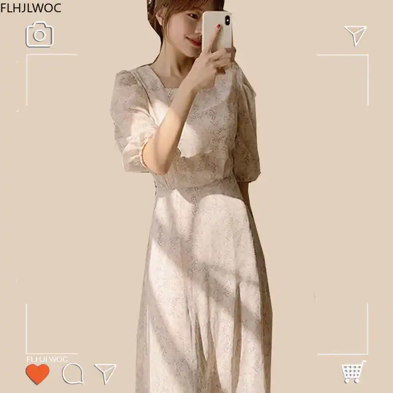 Quadrato Del Collare Di Estate Del Vestito Elegante Della Signora Di Abbigliamento Di Moda Coreano Chic Vintage Abiti Casual Abiti Sveglio 2020 Abiti Aliexpress