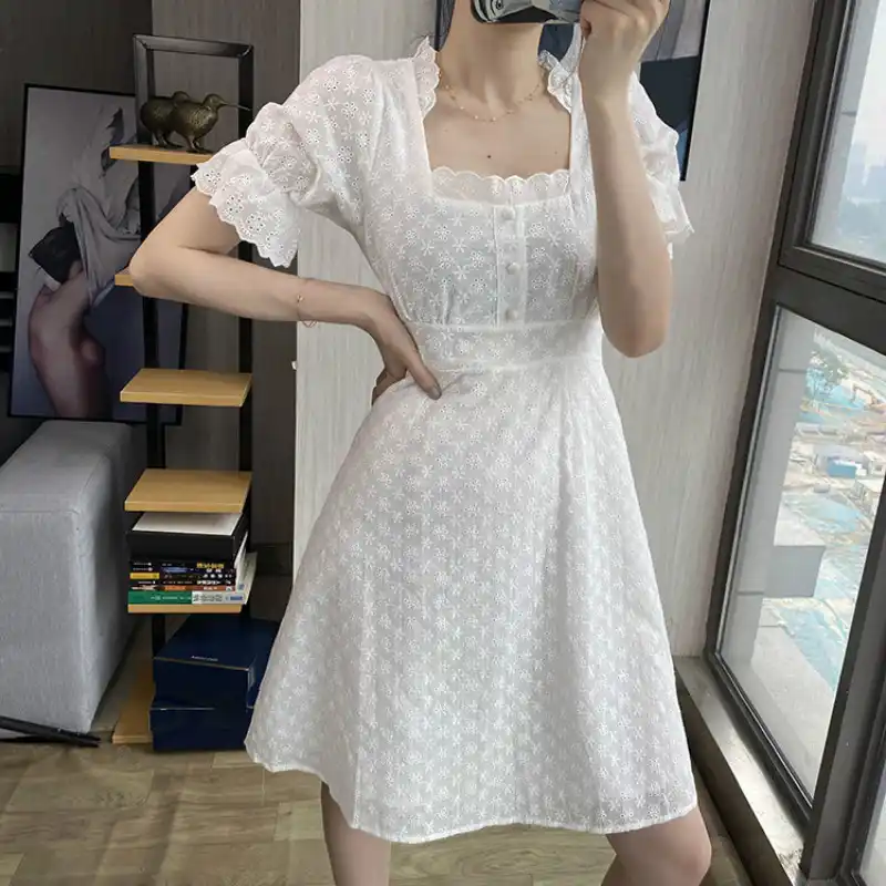 Collare Quadrato Embrolidery Del Merletto Vestiti Dalle Donne Del Manicotto Di Soffio A Vita Alta Di Cotone Bianco 2020 Del Vestito Da Estate Aliexpress