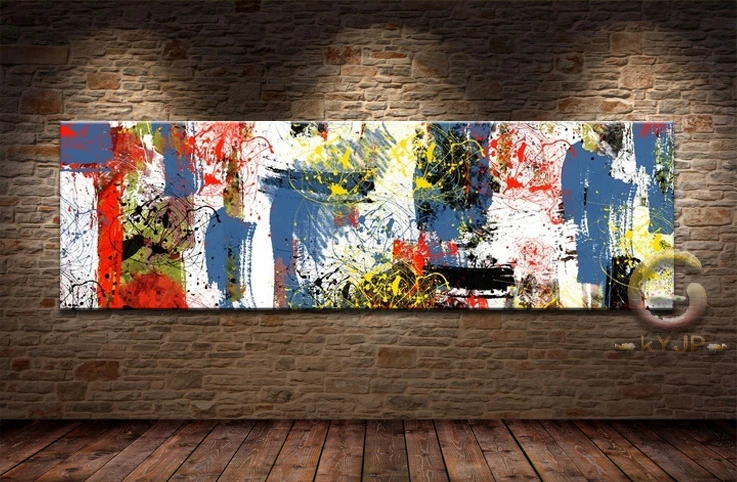 Fokenzary Dipinto Colorato Astratto Realizzato A Mano Su Tela Colori Vivaci Rosso Verde Caffe Blu Decorazione Per Parete Con Cornice Pronto Da Appendere Tela 16x32in Amazon It Casa E Cucina