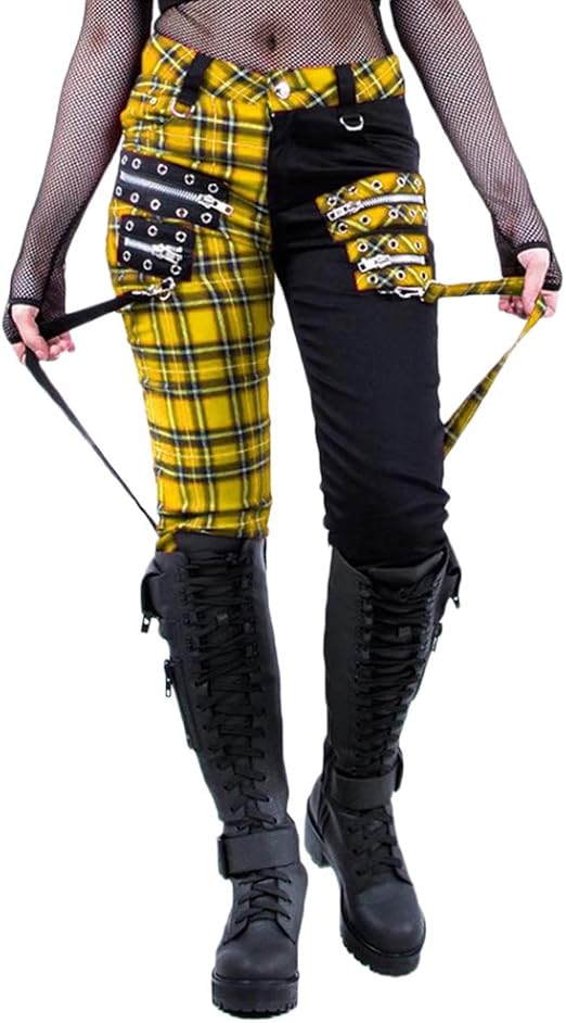 Minetom Donna Pantaloni A Quadri Con Bretelle Skinny Abbinamento Di Colore Vita Alta Punk Pantaloni Plaid Di Tartan Amazon It Abbigliamento