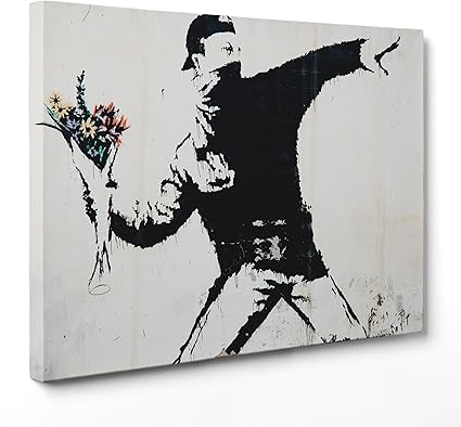 Quadro Su Tela Canvas Intelaiato Pronto Da Appendere Banksy Arte Street Art Lanciatore Di Fiori 50x70cm Senza Cornice Cod 1644 Amazon It Casa E Cucina