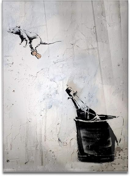 Giallobus Quadro Pronto Da Appendere Stampa Su Vetro Acrilico Plexiglass Banksy Topo Sul Tappo Di Bottiglia