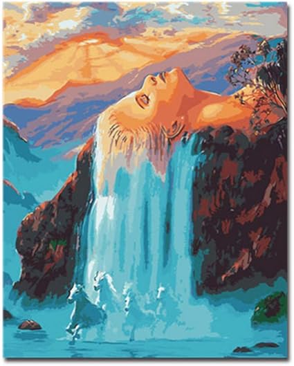 Zfkdsd Pittura A Mano Dipinto Ad Olio Con Numeri Cascata Di Capelli Bianchi Immagini Di Paesaggi Disegno Diy Coloring On Canvas Living Room Wall Art Amazon It Casa E Cucina